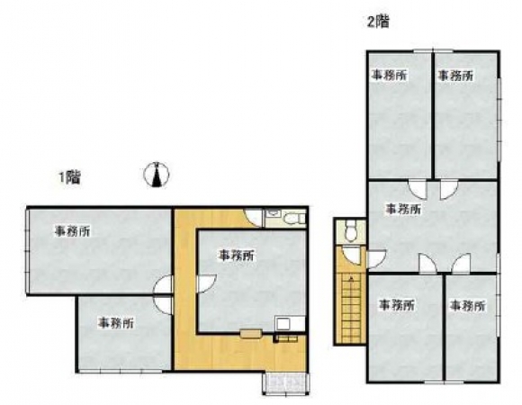 備考 | 1階2階メゾネットタイプ(約50坪) 事務所・医院・美容室等職種相談可 1階2階分割契約も相談可 更新事務手数料15000円要 水道代1ヶ月5000円 残存物(1階エアコン1基、2階エアコン4基) |