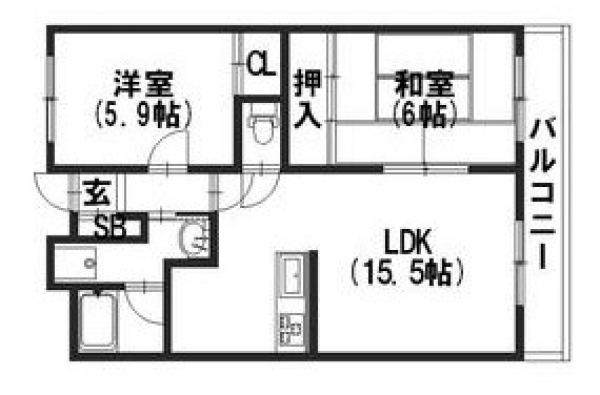 | 間取り詳細 | LDK15.5畳1室 洋室5.9畳1室 和室6畳1室 |