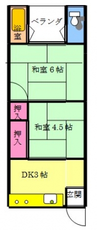 | 間取り詳細 | K3畳1室 和室6畳1室 和室4.5畳1室 |
