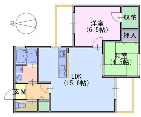 | 間取り詳細 | LDK15.6畳1室 洋室6.5畳1室 和室4.5畳1室 |
