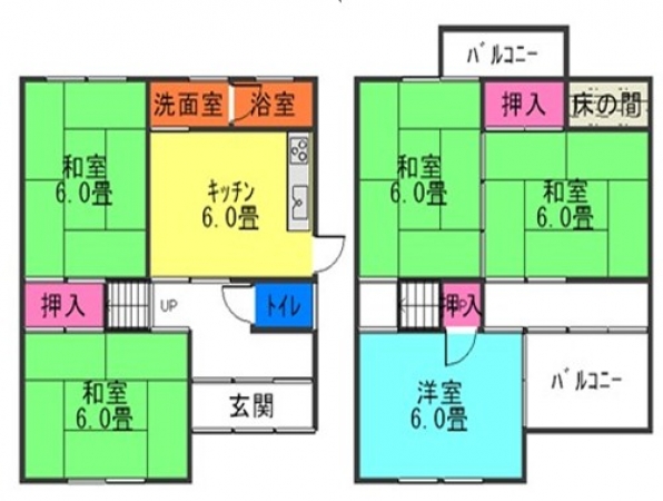| 間取り詳細 | DK6畳1室 和室6畳2室 洋室6畳1室 和室6畳2室 |