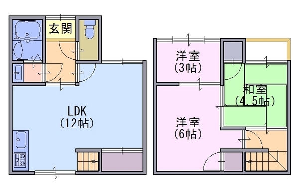 | 間取り詳細 | LDK12畳1室 洋室6畳1室 洋室3畳1室 和室4.5畳1室 |